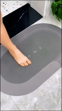Está hecha de diatomita, un mineral natural poroso. No es blanda como una alfombra de tela, tiene una sensación firme y sólida, como una piedra de pulir natural. Nuestros clientes se acostumbran al instante y prefieren su firmeza a la sensación de una alfombra empapada.