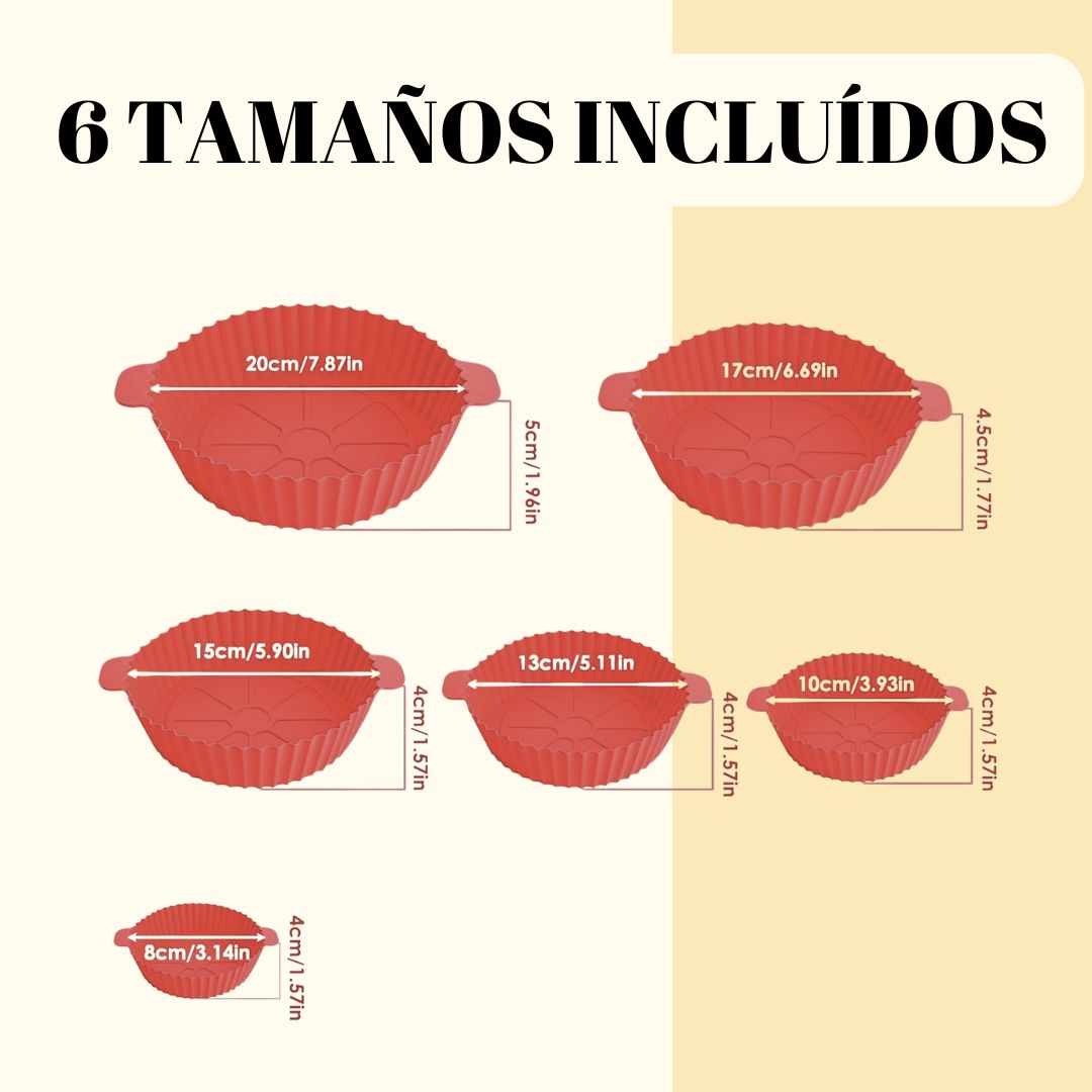 ¡Seguro que sí! Nuestro kit incluye 6 tamaños diseñados para adaptarse al 99% de las freidoras del mercado, desde las más grandes de 7 litros hasta las más compactas de 3.5 litros.