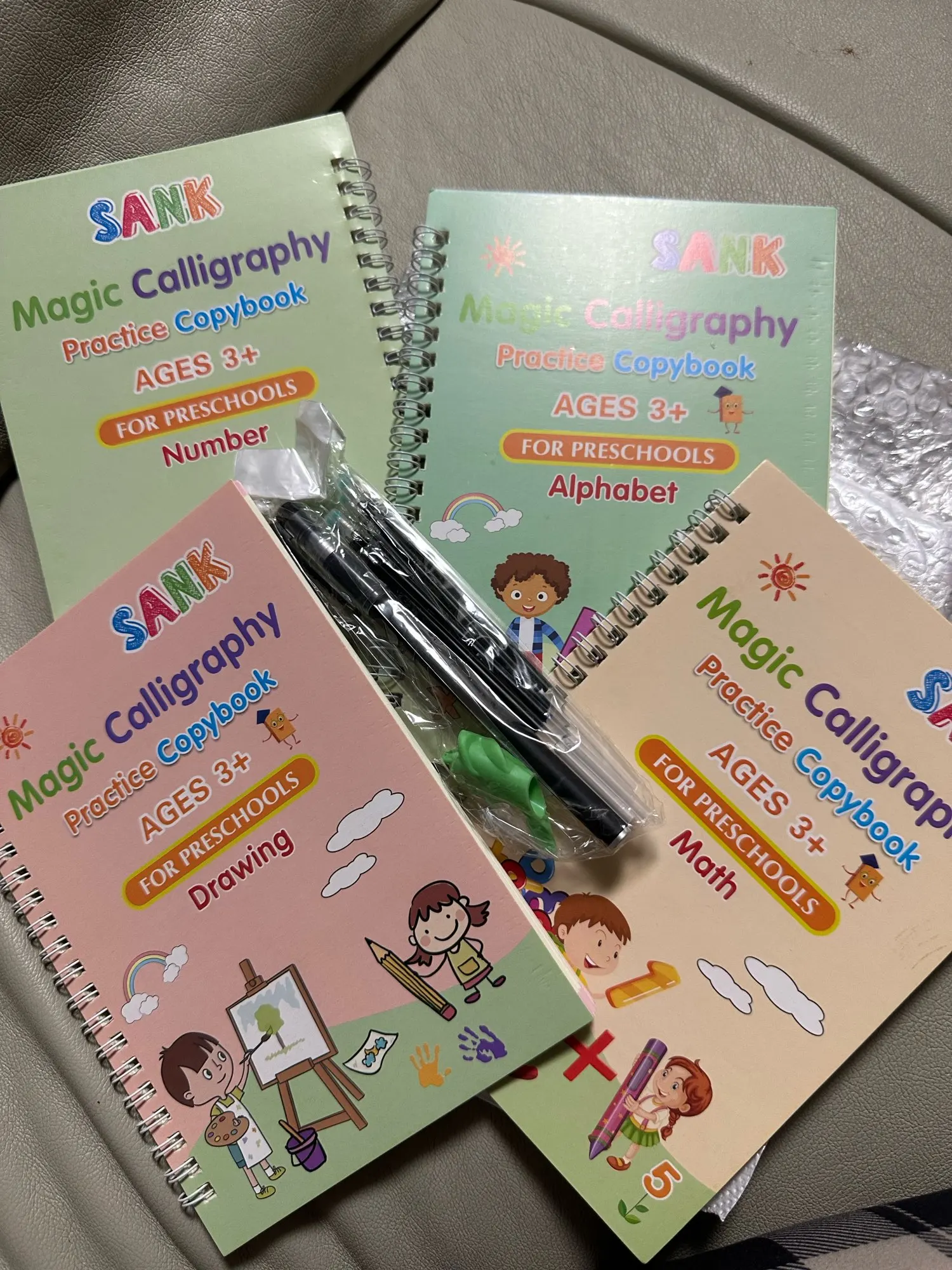 DedoGuía™ es un set de 4 libros de caligrafía (alfabeto, dibujo, números y matemáticas).
